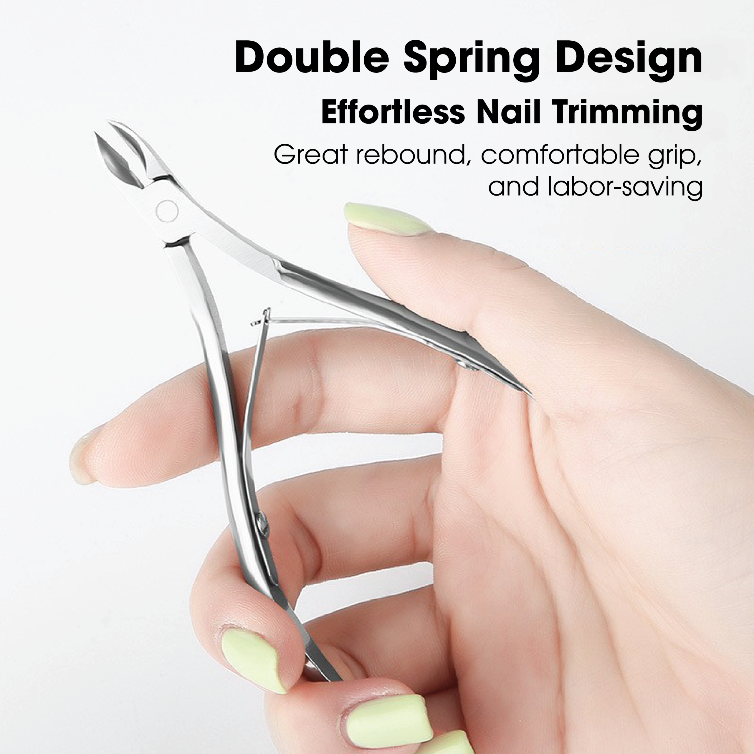 Loại bỏ phần da thừa xung quanh móng một cách an toàn và chính xác. Chọn kềm có lưỡi sắc bén, đầu nhọn để dễ dàng tiếp cận các góc nhỏ.