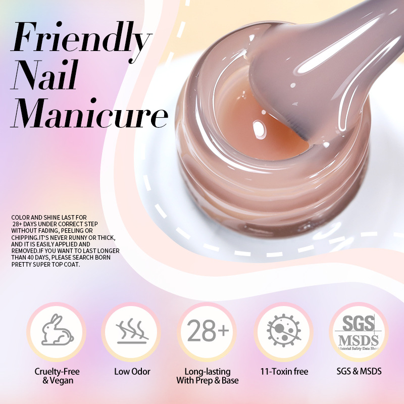 BORN PRETTY Sơn gel móng tay 50 màu mới, tông hồng trong suốt, giúp móng tay tôn da và mềm mại như jelly gel dễ sấy bằng đèn UV/LED