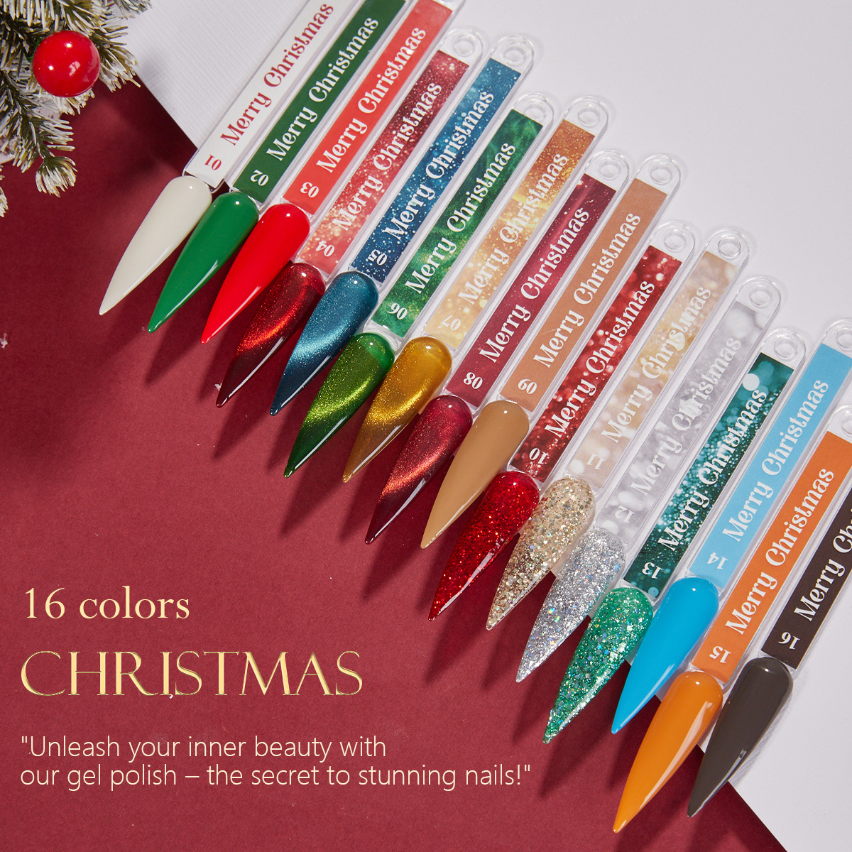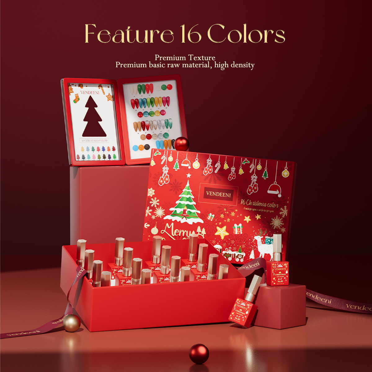 Hộp Quà Giáng Sinh Vendeeni – Bộ 16 Màu Sơn Gel Mới, Nhũ Vàng & Đỏ Mắt Mèo