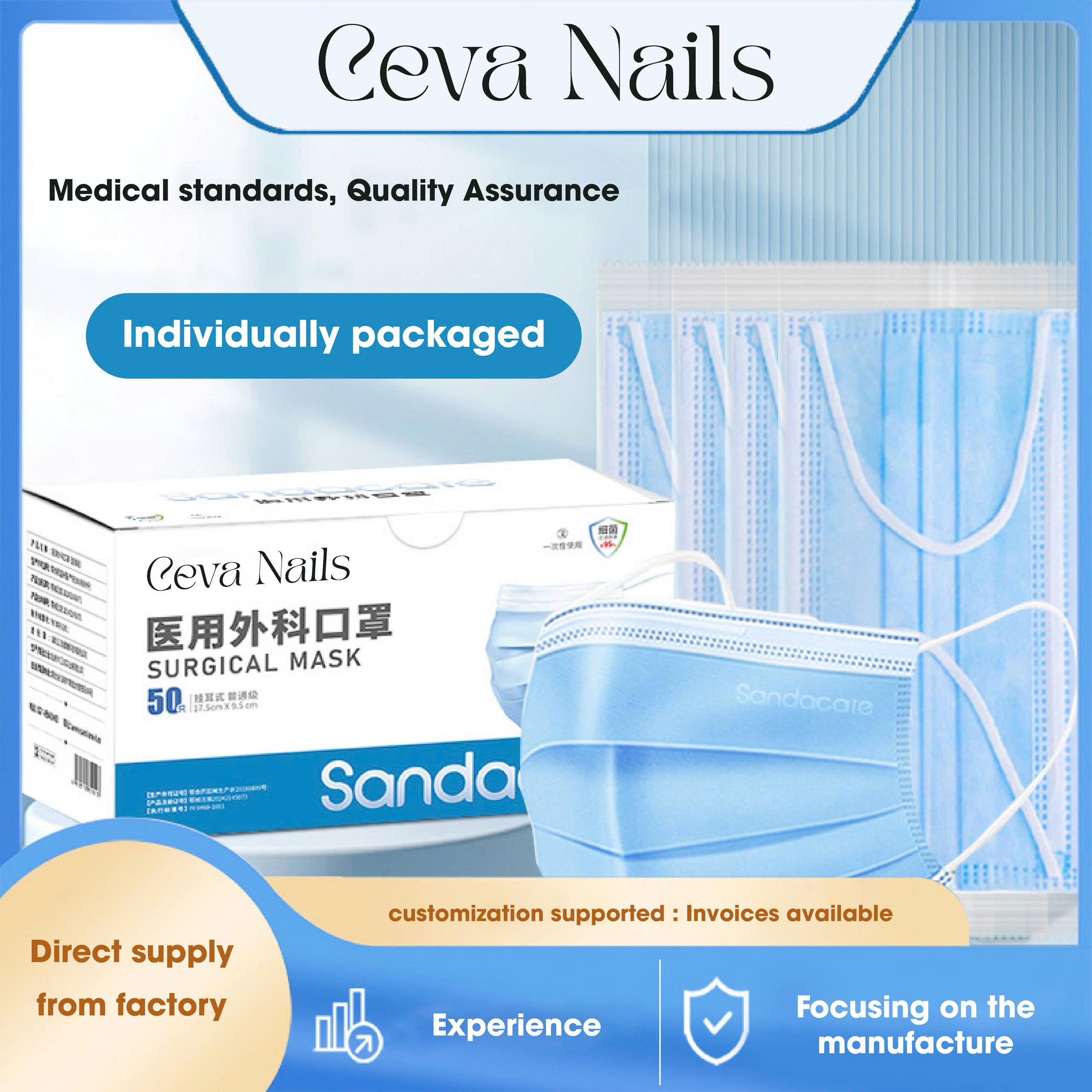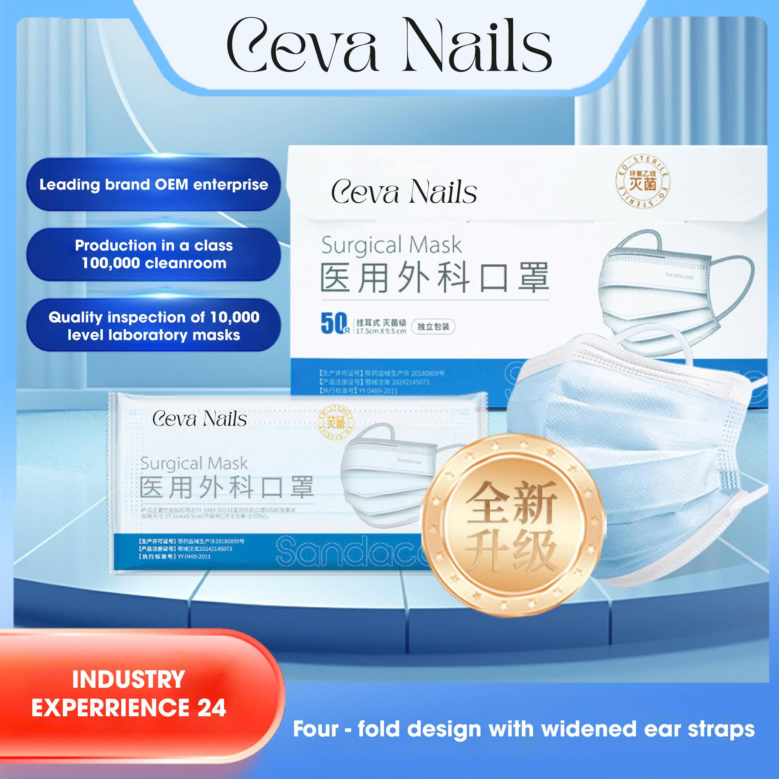 Khẩu trang y tế Ceva Nails là dòng khẩu trang đạt tiêu chuẩn y khoa, được sản xuất trong phòng sạch Class 100,000 và kiểm định tại phòng thí nghiệm tiêu chuẩn 10,000. Sản phẩm phù hợp cho chủ tiệm nails, spa, trung tâm làm đẹp và sử dụng hằng ngày nhằm bảo vệ tối đa trước bụi mịn, vi khuẩn và giọt bắn.