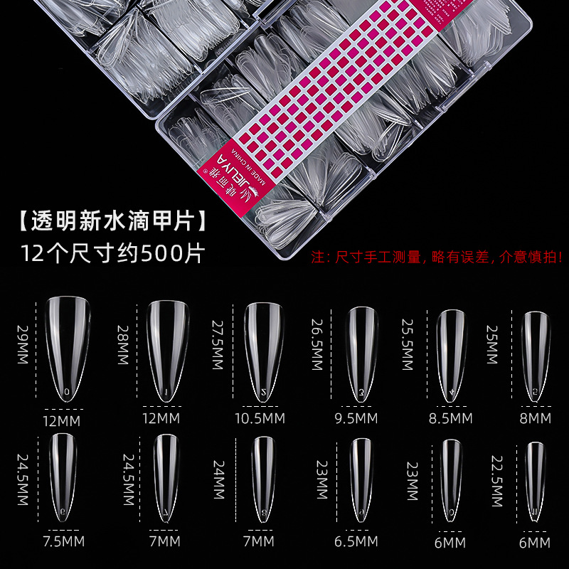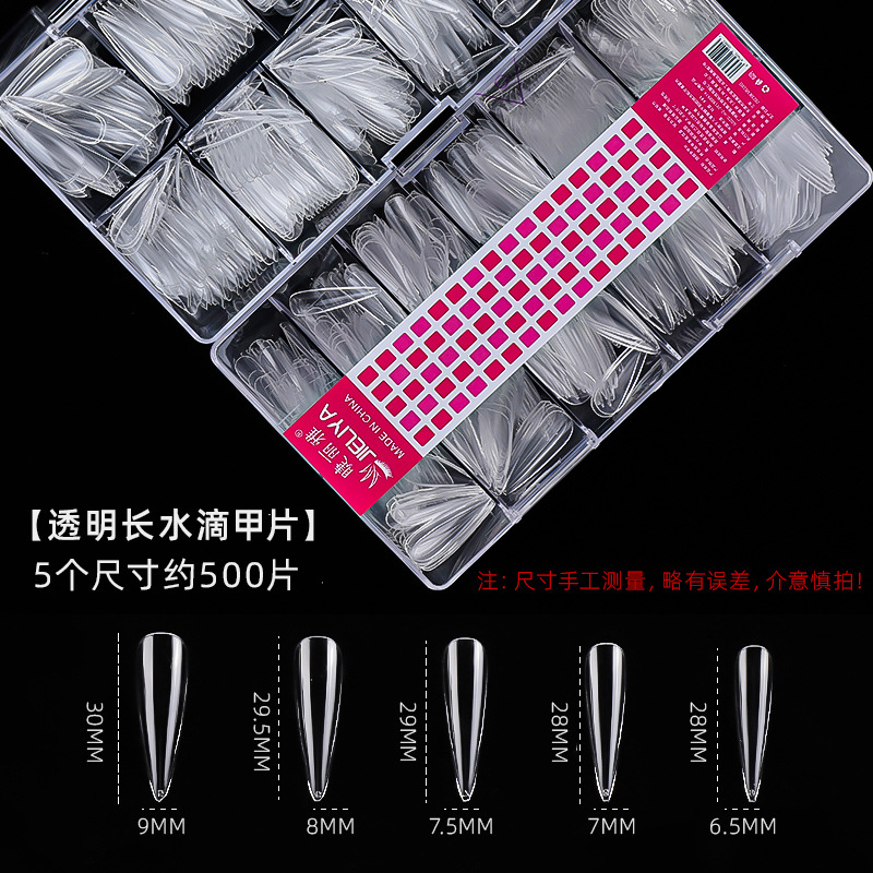 Móng giả Jieliya, móng tip mờ, móng dáng giọt nước, móng giả siêu mỏng, tip nail dài trong suốt, tip bán mờ, dụng cụ nail chuyên nghiệp