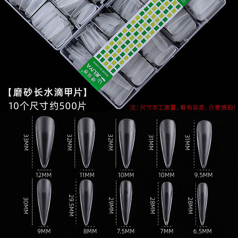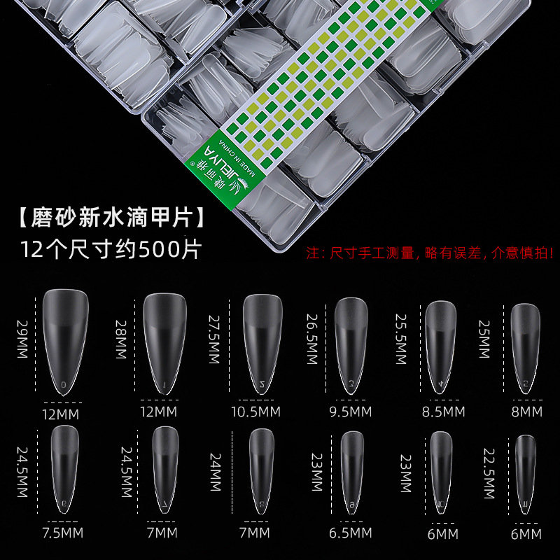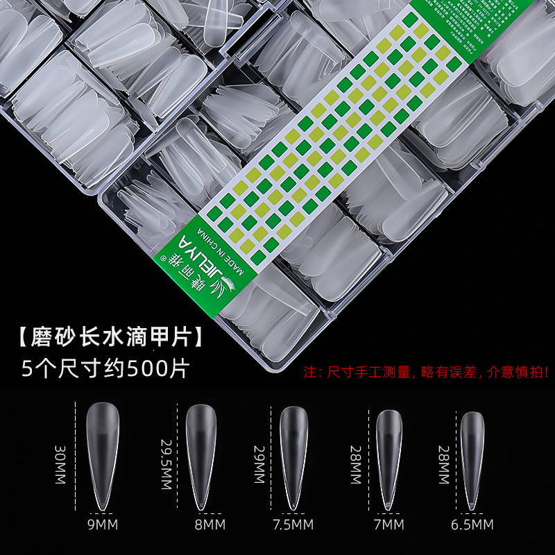 Móng giả Jieliya siêu mỏng bề mặt mờ, dáng giọt nước dài thời trang. Kéo dài móng nhanh, dễ tạo kiểu, phù hợp dùng tại tiệm nail và làm móng tại nhà.