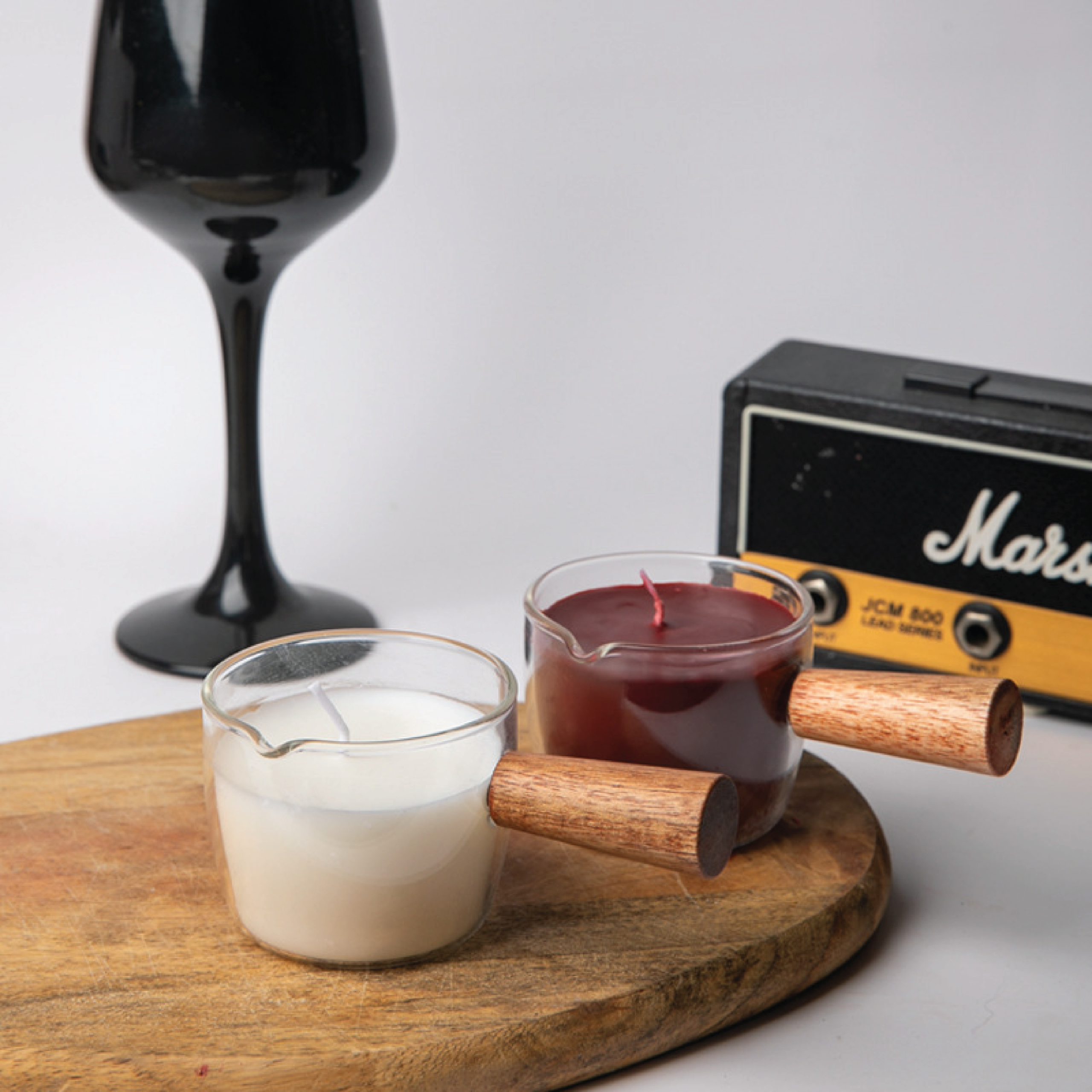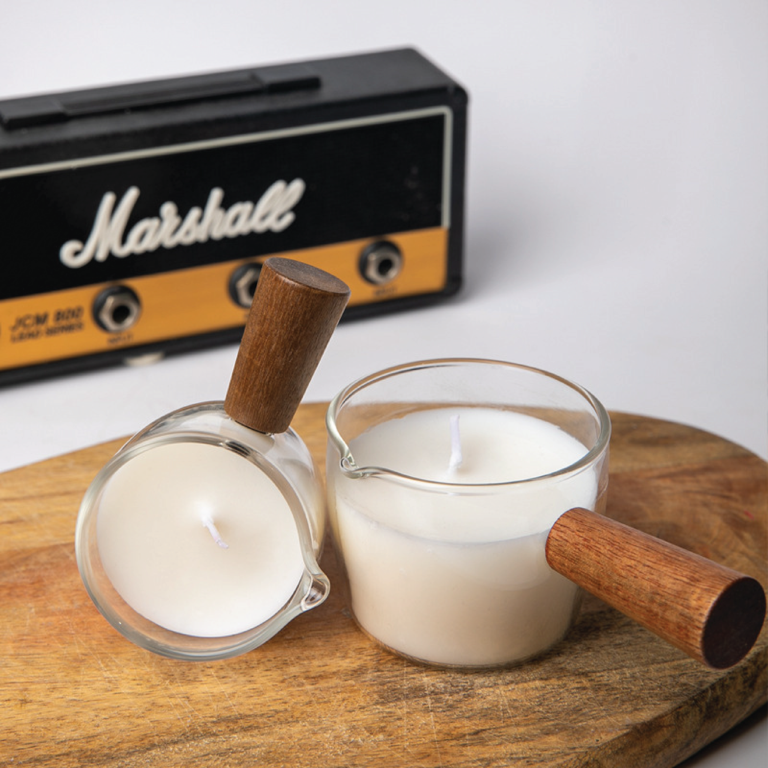 Nến tinh dầu nhiệt độ thấp tùy chỉnh dành cho spa và massage toàn thân, được làm bằng tay cầm bằng gỗ và cốc thủy tinh, bao gồm sáp massage dầu dừa và nến thơm
