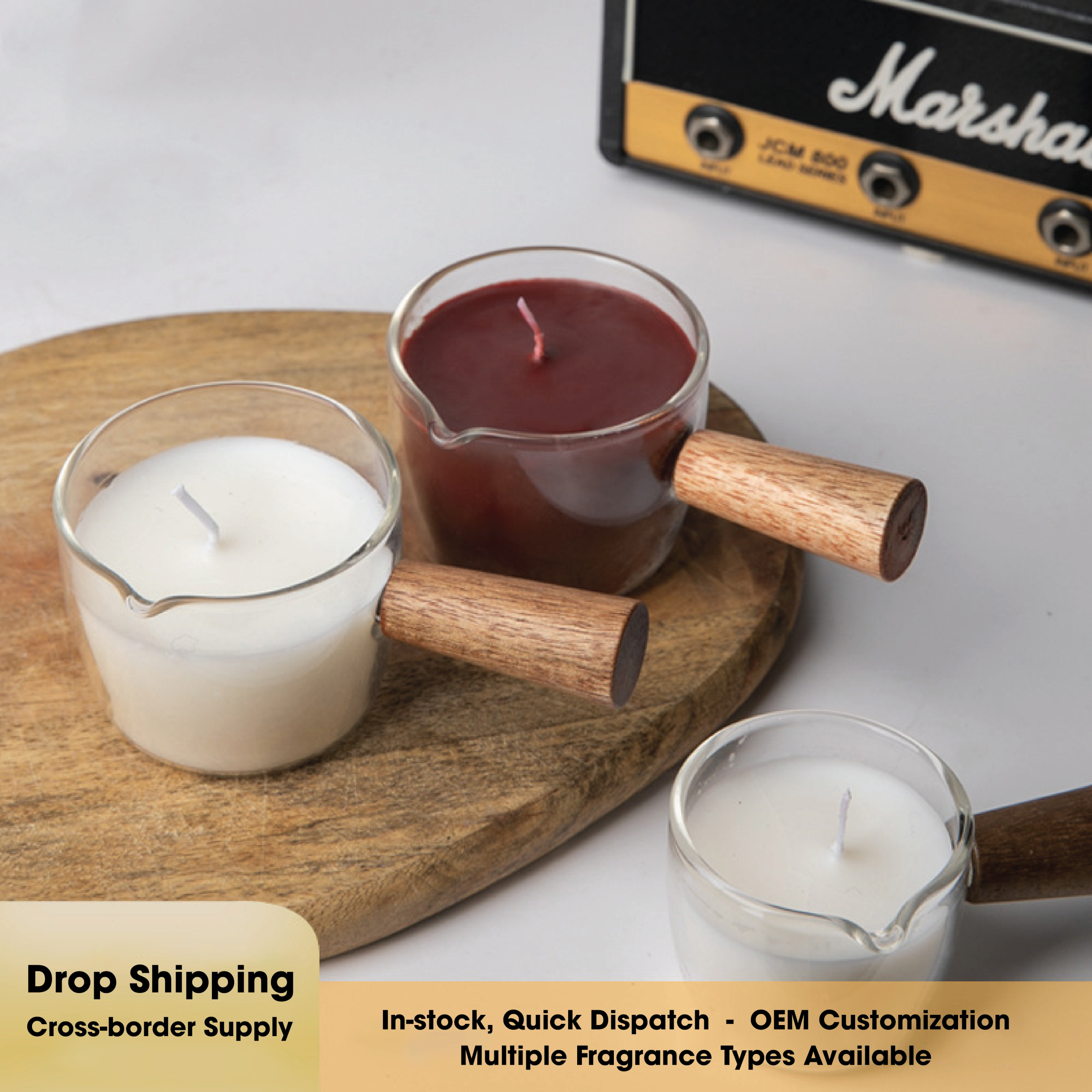 Nến tinh dầu nhiệt độ thấp tùy chỉnh dành cho spa và massage toàn thân, được làm bằng tay cầm bằng gỗ và cốc thủy tinh, bao gồm sáp massage dầu dừa và nến thơm