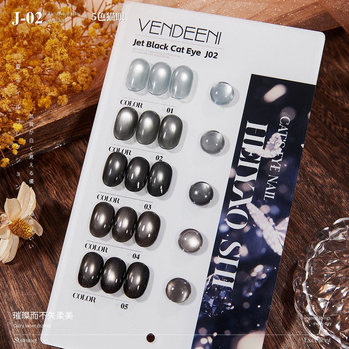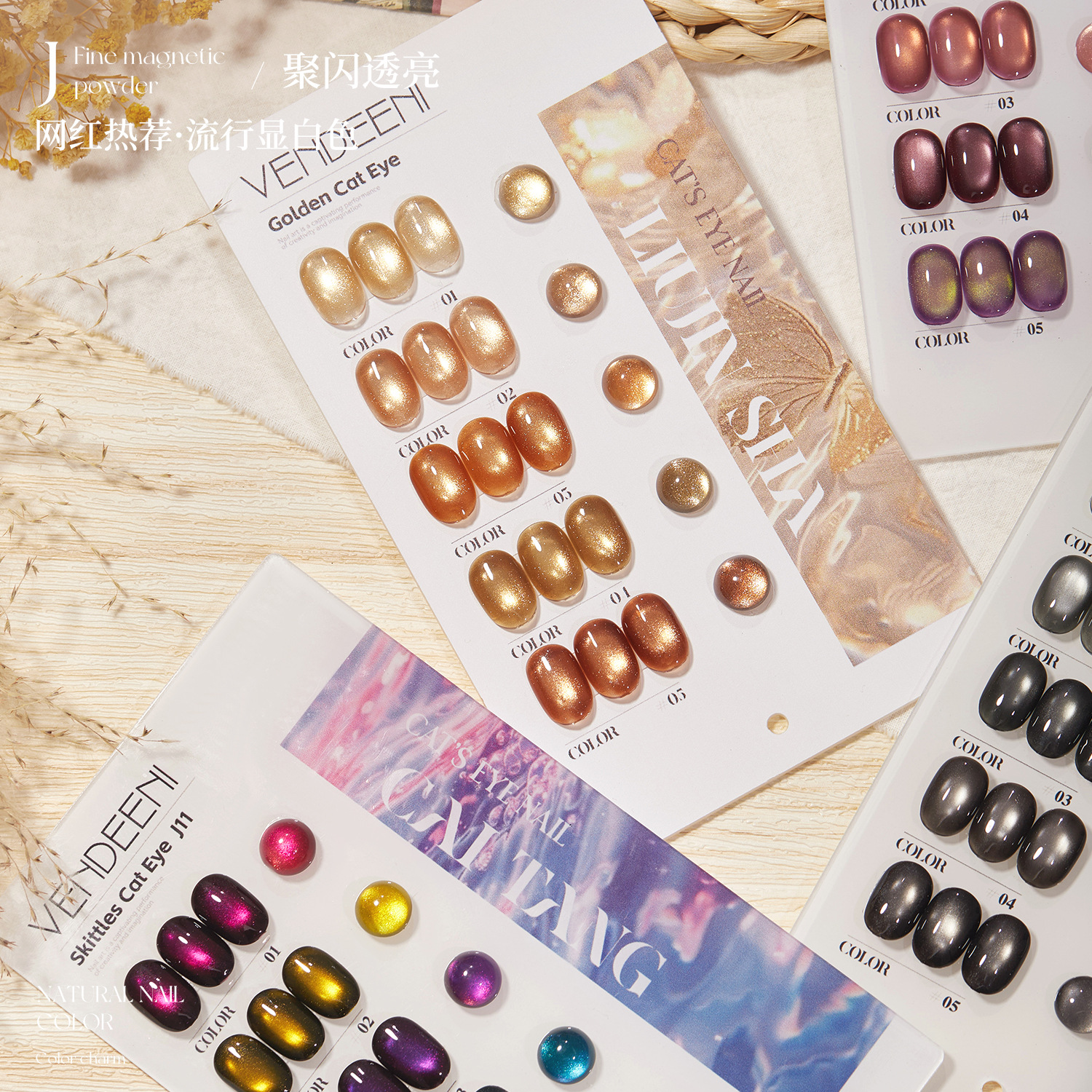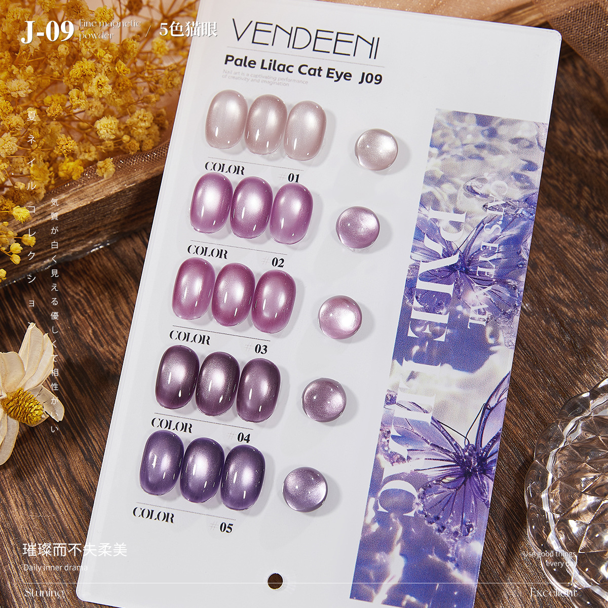 Sơn Móng Tay Vendeeni: Bóng đèn hạt thủy tinh Vendeeni siêu sáng mắt mèo keo màu tím đen bột ánh sáng màu xanh satin sơn móng tay tinh tế
