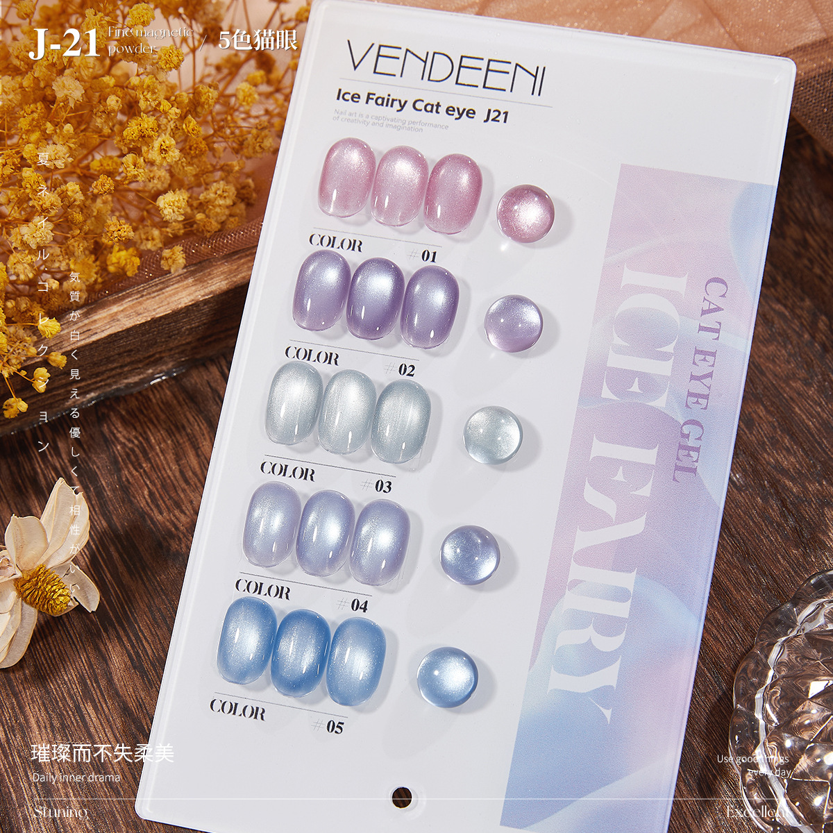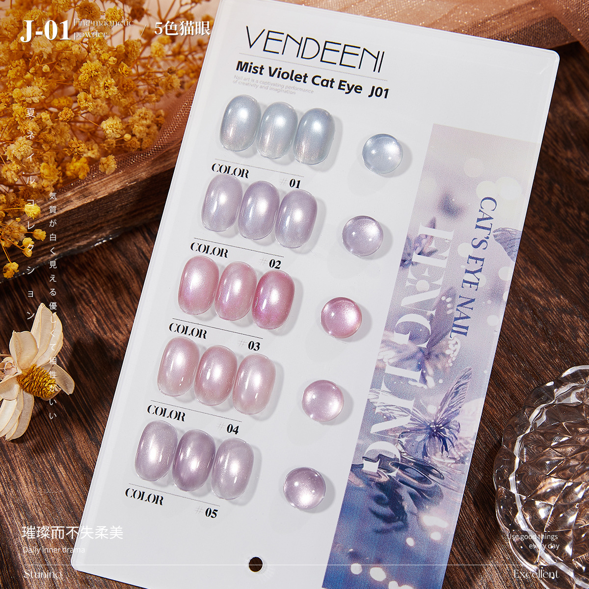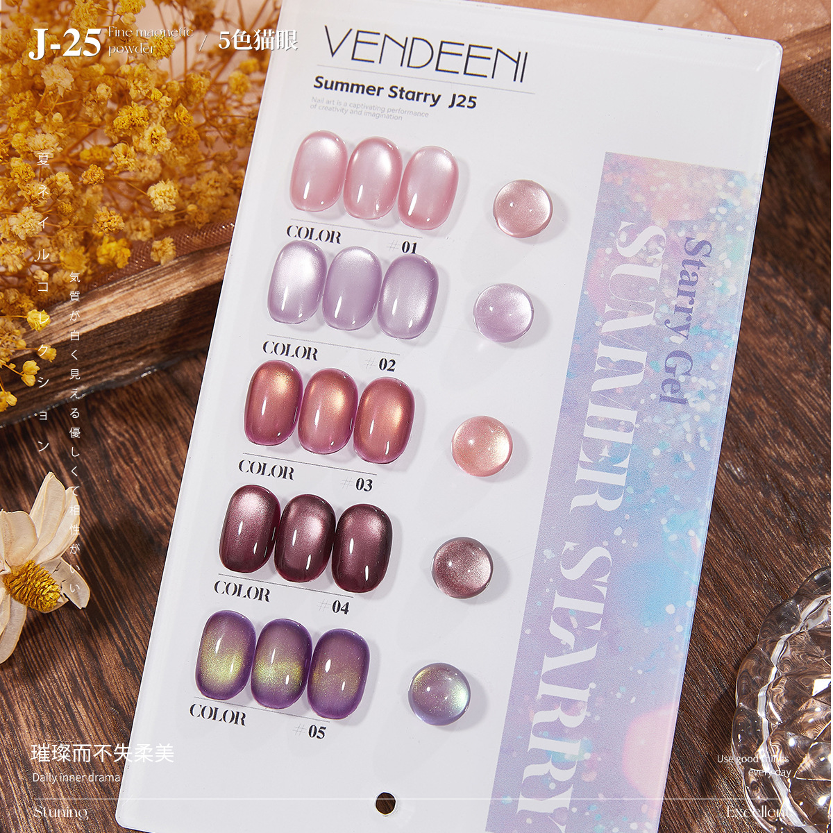 Sơn Móng Tay Vendeeni: Bóng đèn hạt thủy tinh Vendeeni siêu sáng mắt mèo keo màu tím đen bột ánh sáng màu xanh satin sơn móng tay tinh tế